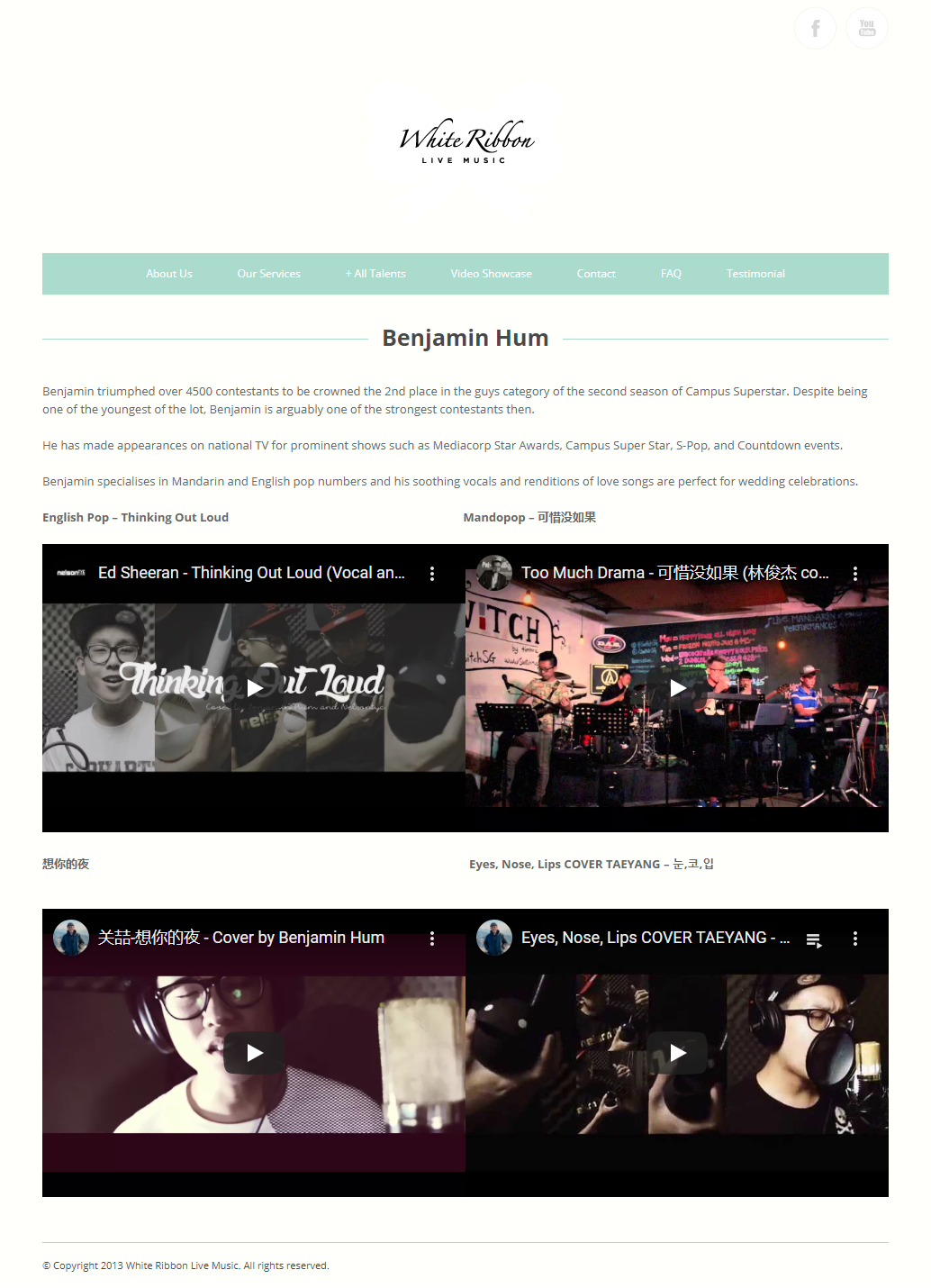 [News Release] 9 Oct 13 – Benjamin Hum (White Ribbon Live Music)